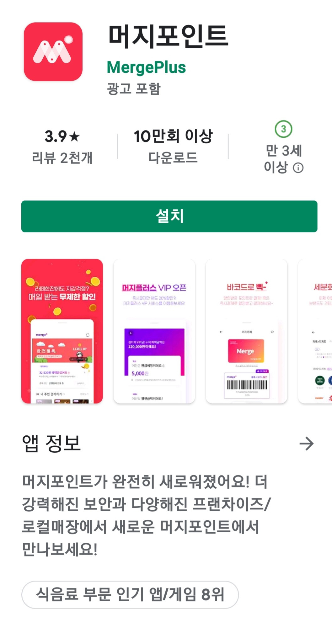 반면 머지머니는 머지플러스가 충분히 자리 잡으면 할인율을 하향 조정할 예정이라고 머지포인트 측은 밝혔다 머지. 머지포인트 자주 뜨네요.이제 할인된 가격에만 충전하시면될 듯 합니다.